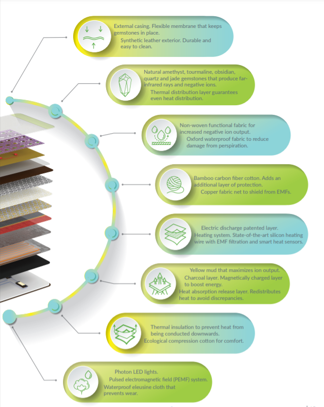 - EMF Protection: Advanced filtration system and extra EMF-blocking layers